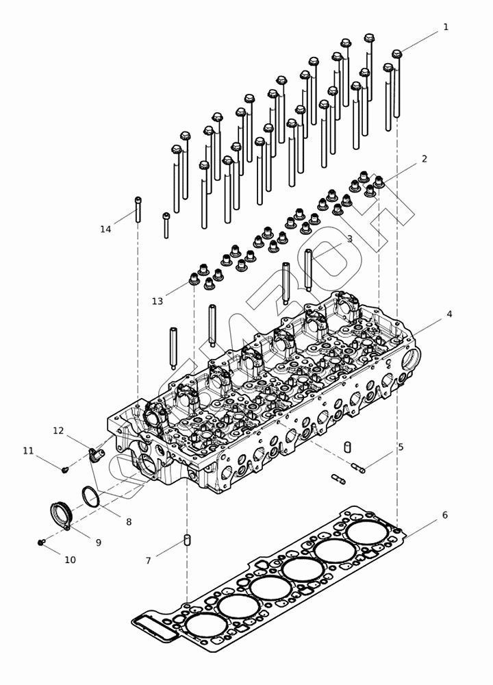 Графический каталог запасных частей к технике: LOVOL TM6R2A2204-006K. Сборка головки блока цилиндров