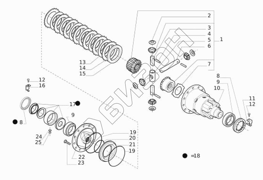 | 18 | 64919 | Комплект уплотнений дифференциала 20.49 + ступичная гайка |