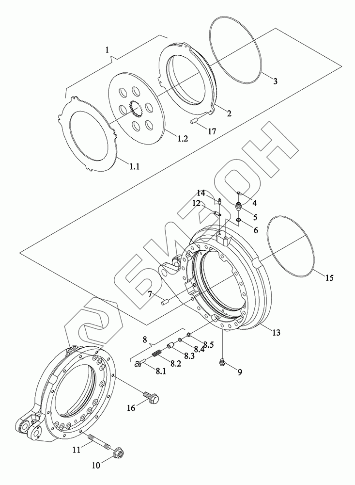 Графический каталог запасных частей к технике: LOVOL TM6R2A2204-006K. Левый тормоз в сборе