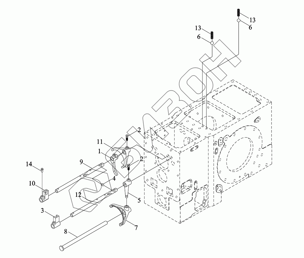 | 12 | TM6R383010002K | Ось вилки переключения |