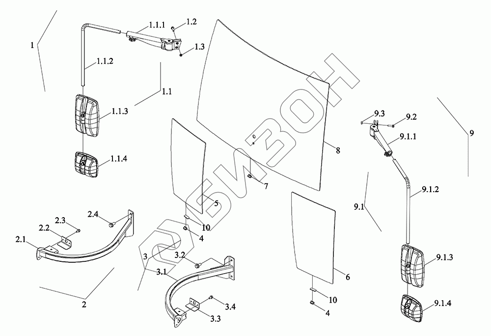 | 9.1.4 | P5S52801151 | Зеркало задней обзорности |