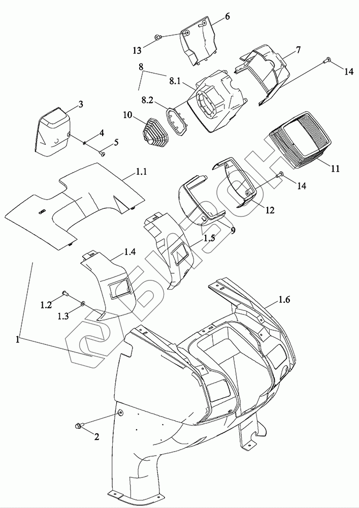 Графический каталог запасных частей к технике: LOVOL TM6R2A2204-006K. Пульт приборный