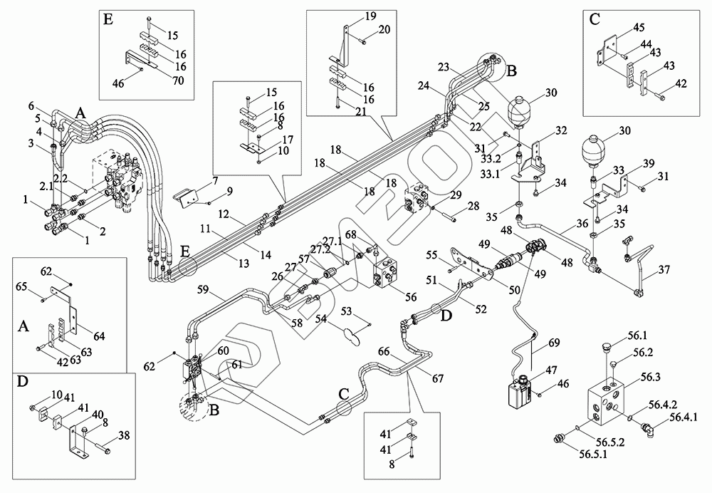 | 66 | TM6R586020022K | Комплект трубок стальных для выходного масла многоходового клапана 9 |