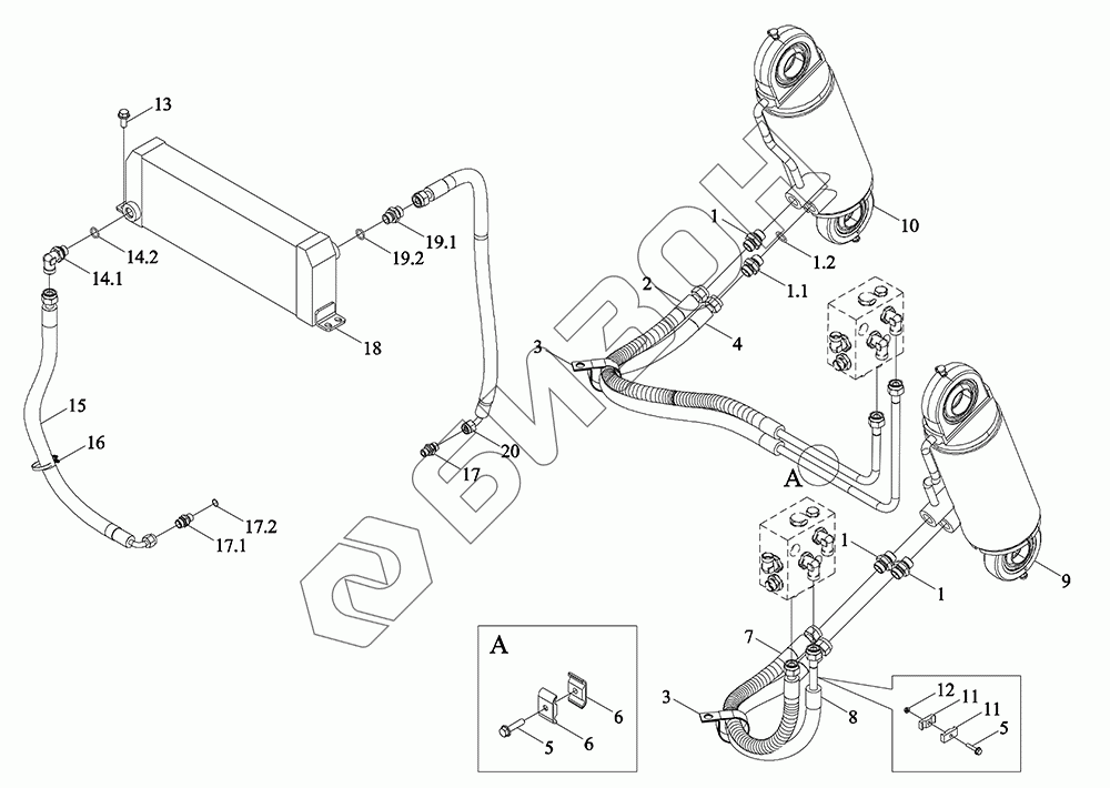 | 8 | TM6R586020028K | Трубка подачи масла в правый цилиндр |