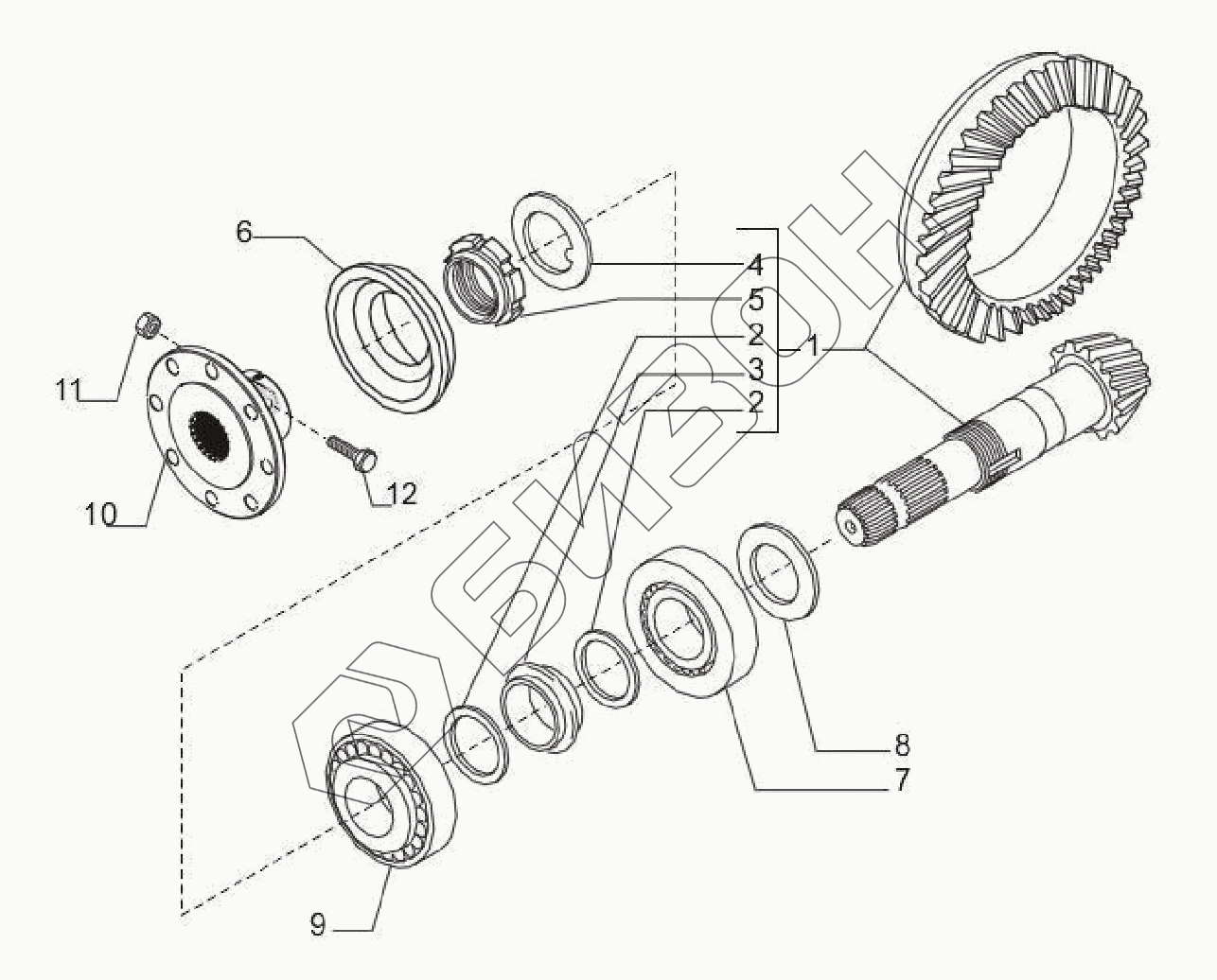 | 1 | 068755 | Комплект шестерен гл. передачи моста (конич. пара) |
