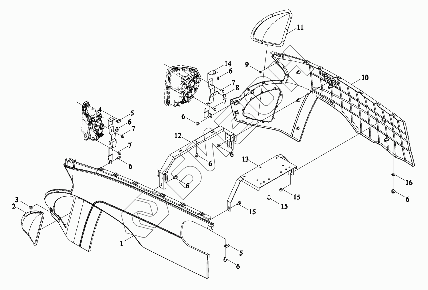 Графический каталог запасных частей к технике: LOVOL TM7N1A2604-002K. Монтажный блок капота 3