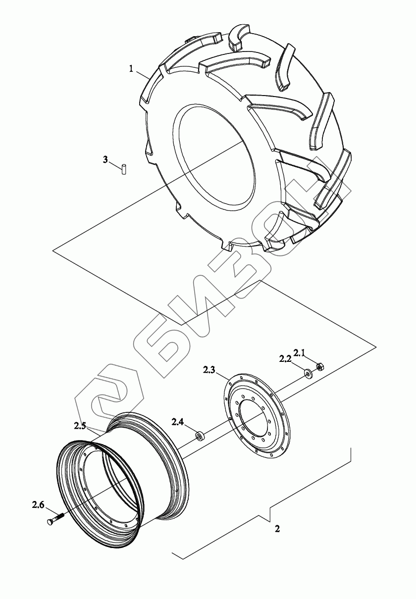 Графический каталог запасных частей к технике: LOVOL TM7N1A2604-002K. Переднее колесо