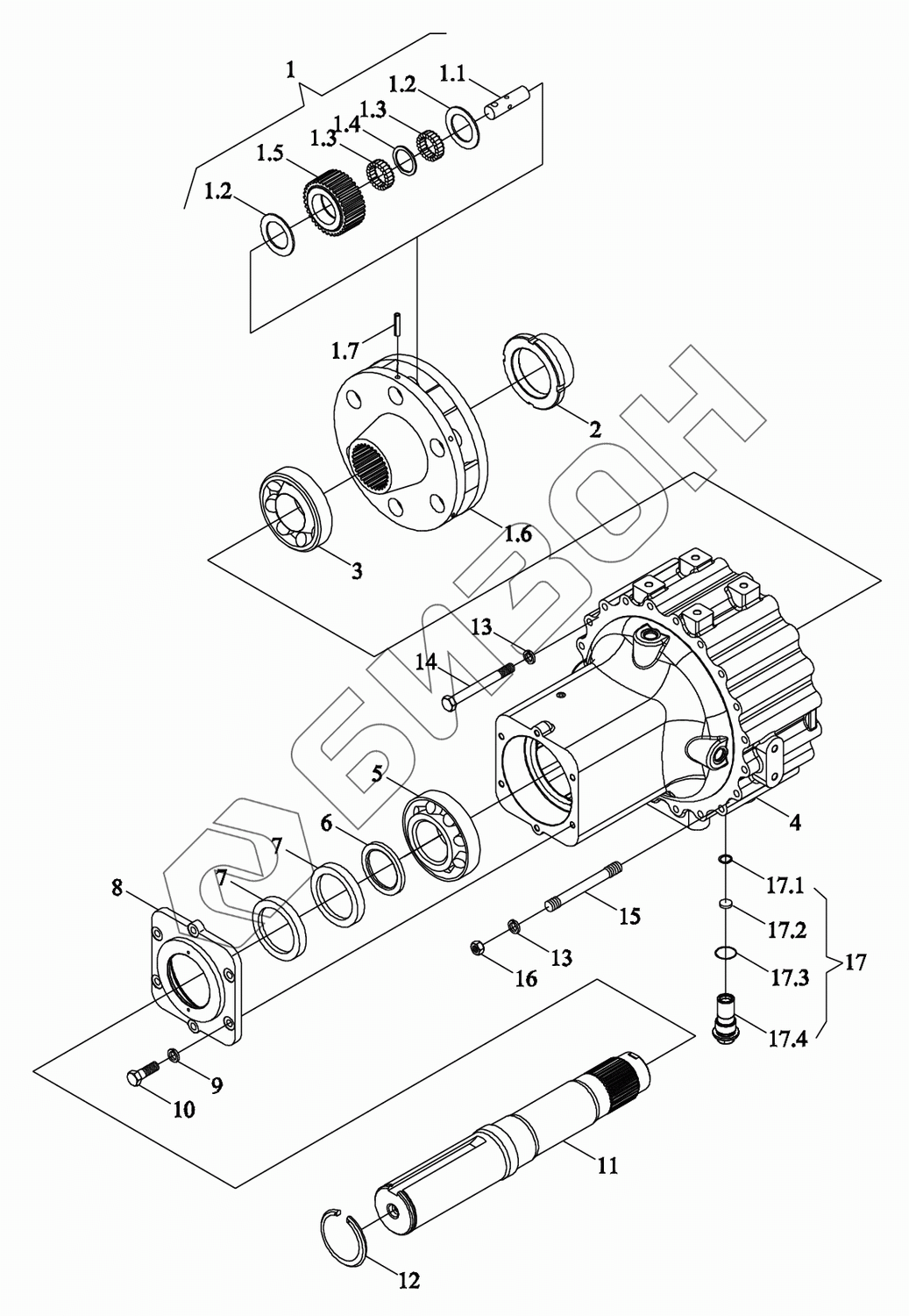 Графический каталог запасных частей к технике: LOVOL TM7N1A2604-002K. Правая конечная передача 1