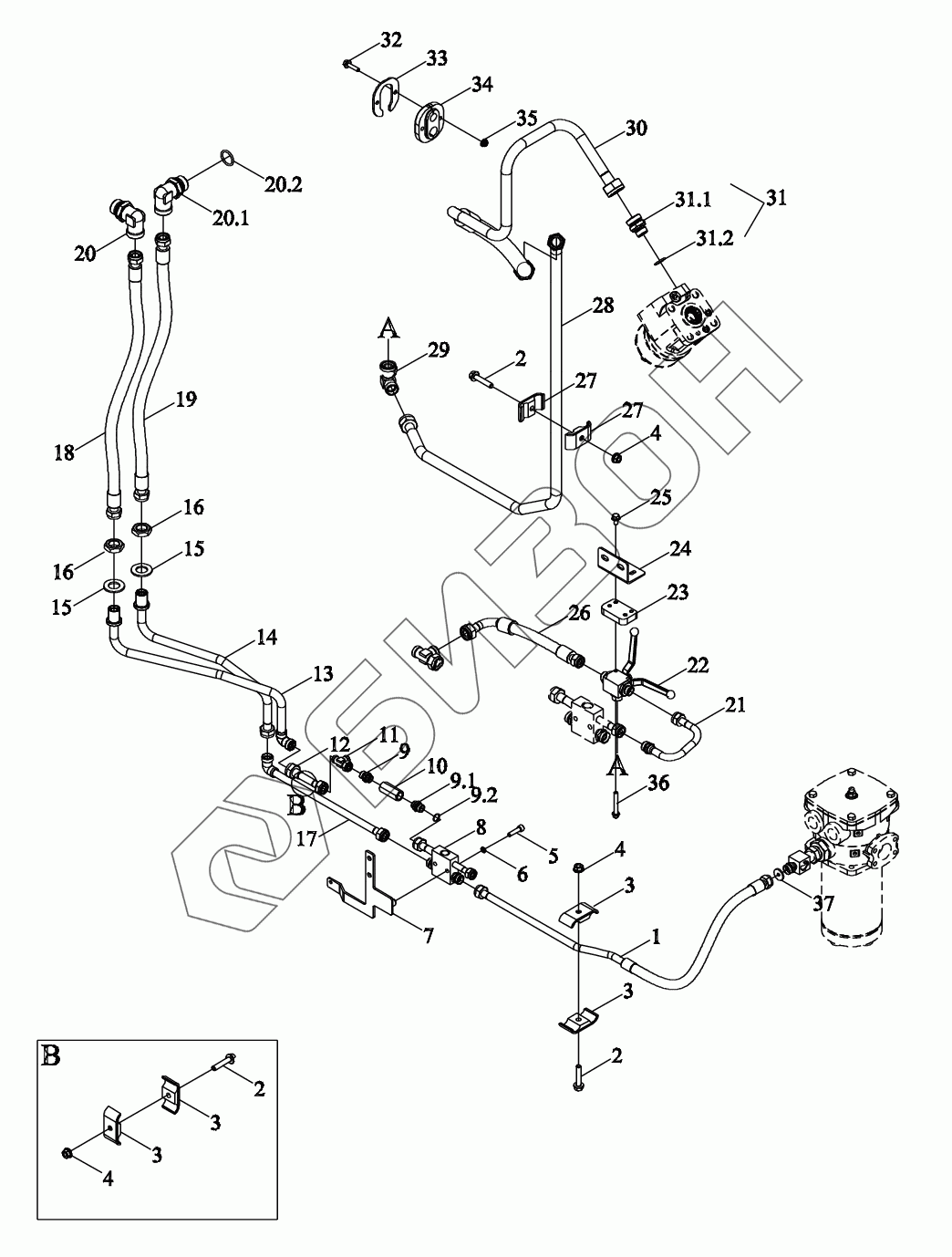 | 3 | TH02402010054 | Зажим маслопровода и резиновая прокладка |