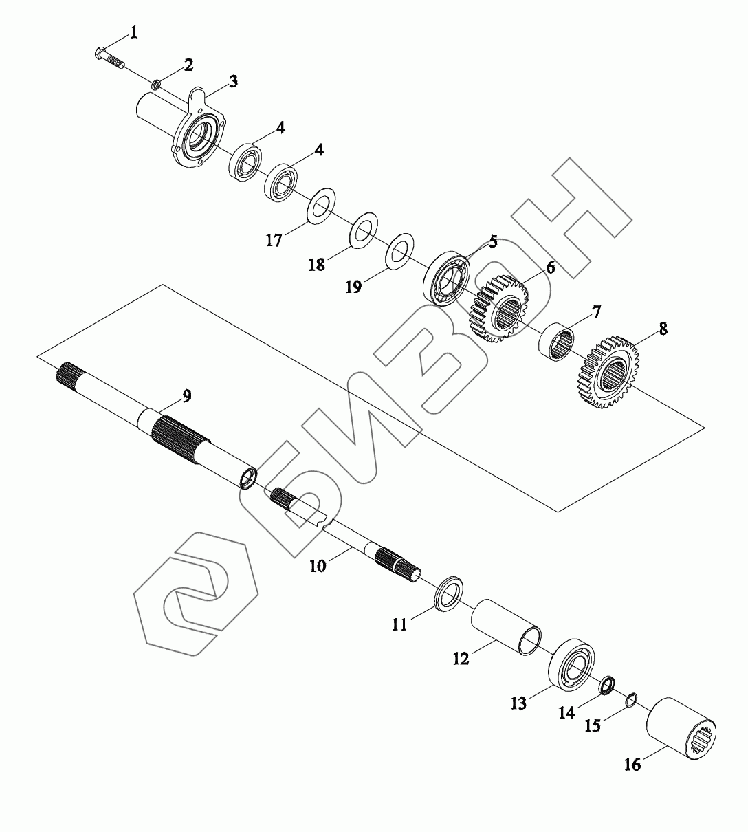 Графический каталог запасных частей к технике: LOVOL TM7N1A2604-002K. Валы и шестерни 1