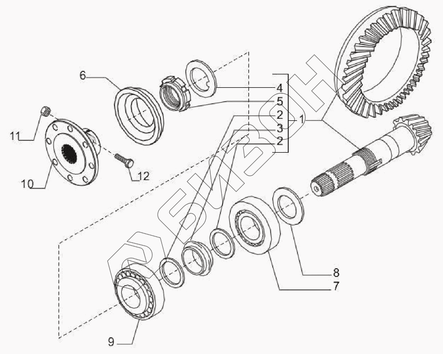 | 1 | 068755 | Комплект шестерен гл. передачи моста (конич. пара) |