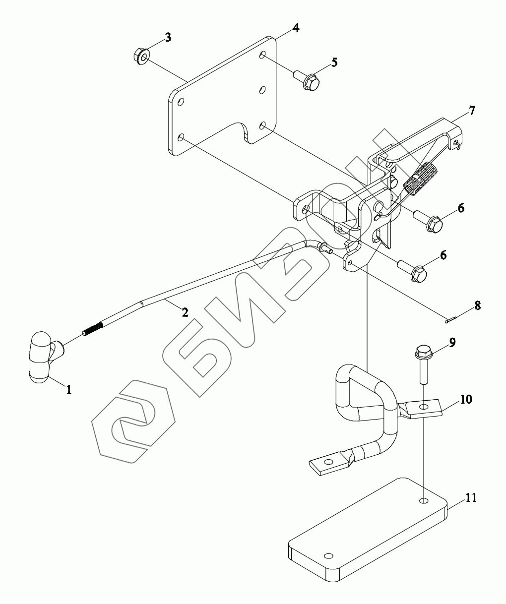Графический каталог запасных частей к технике: LOVOL TM7N1A2604-002K. Механизм блокировки капота