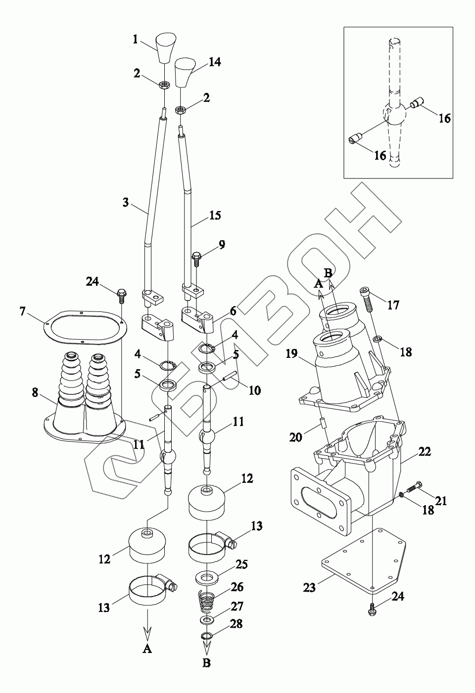 | 15 | TN1S383010003 | Рычаг главного привода переменной скорости |