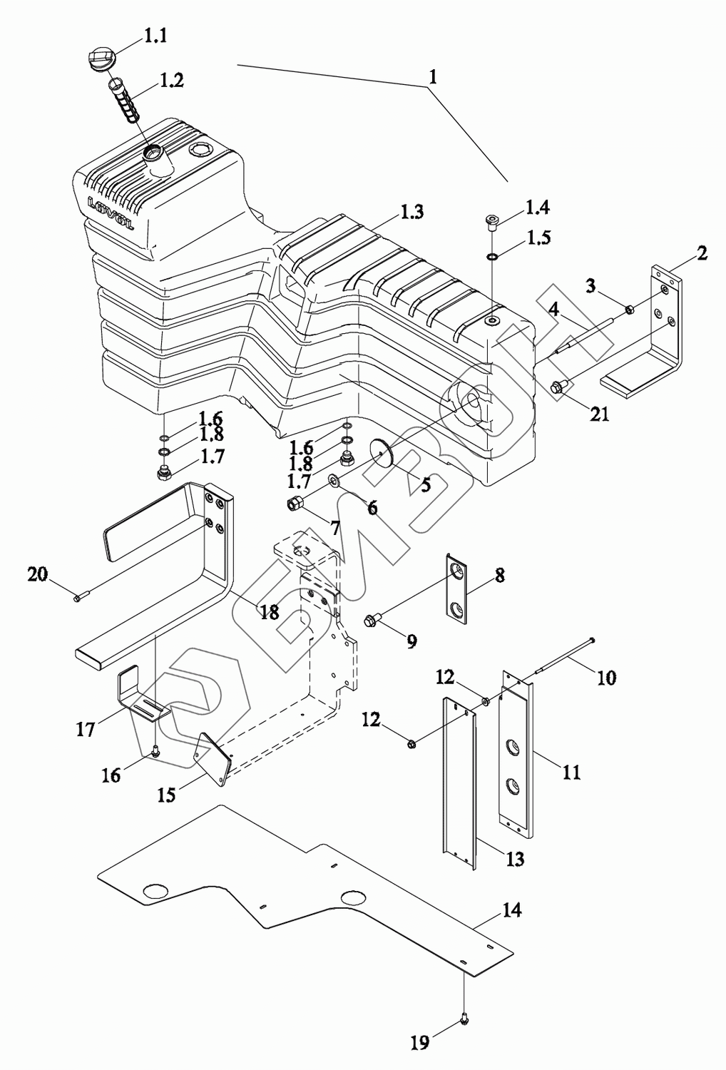 Графический каталог запасных частей к технике: LOVOL TM7N1A2604-002K. Монтажный блок топливного бака