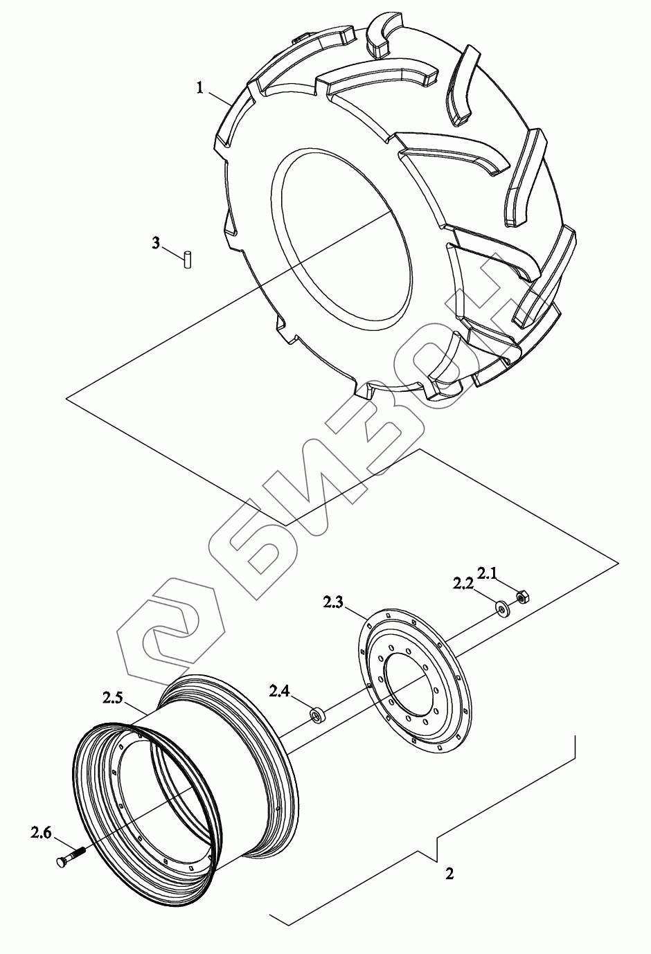 Графический каталог запасных частей к технике: LOVOL TM7N1A2604-002K. Переднее колесо