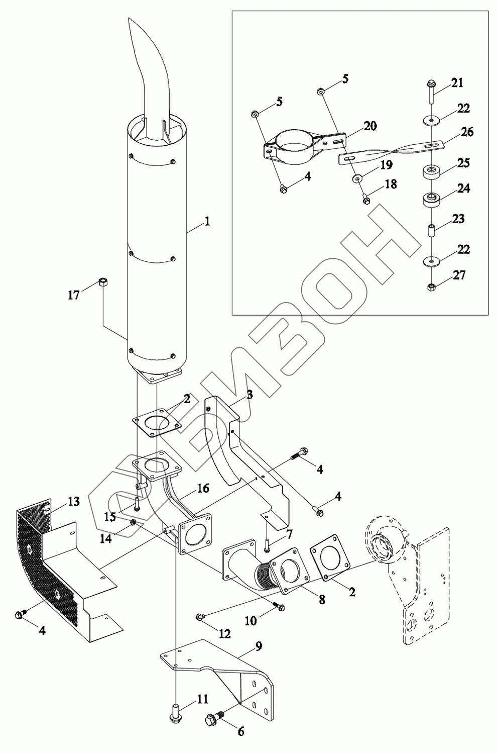 Графический каталог запасных частей к технике: LOVOL TM7N1A2604-002K. Система выпуска