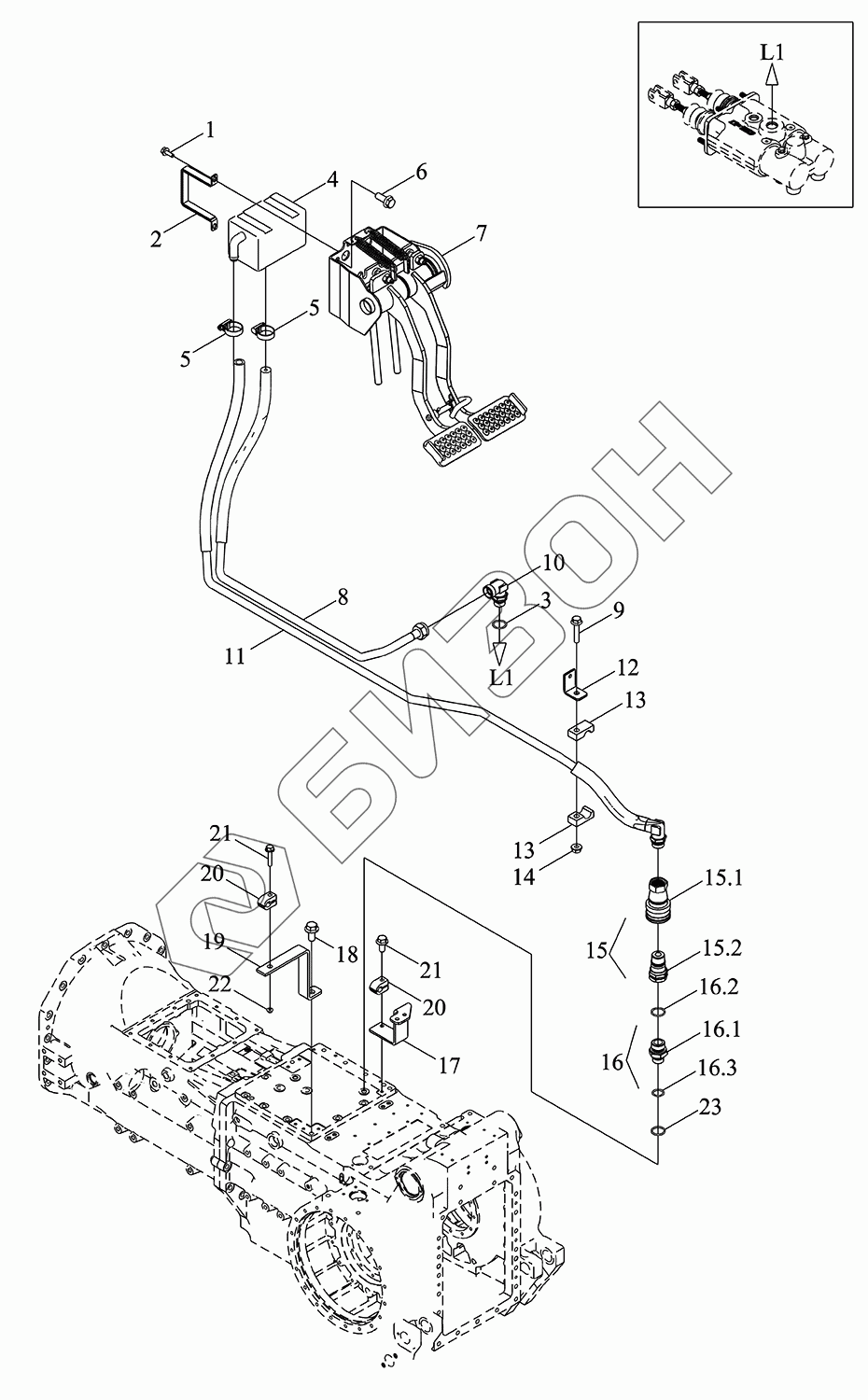 Графический каталог запасных частей к технике: LOVOL TM7N1A2604-003K. Механизм управления тормозами
