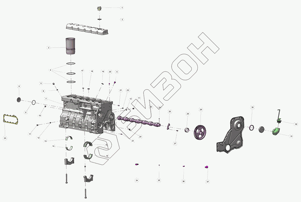 Графический каталог запасных частей к технике: LOVOL TM7N1A2604-003K. Блок-картер