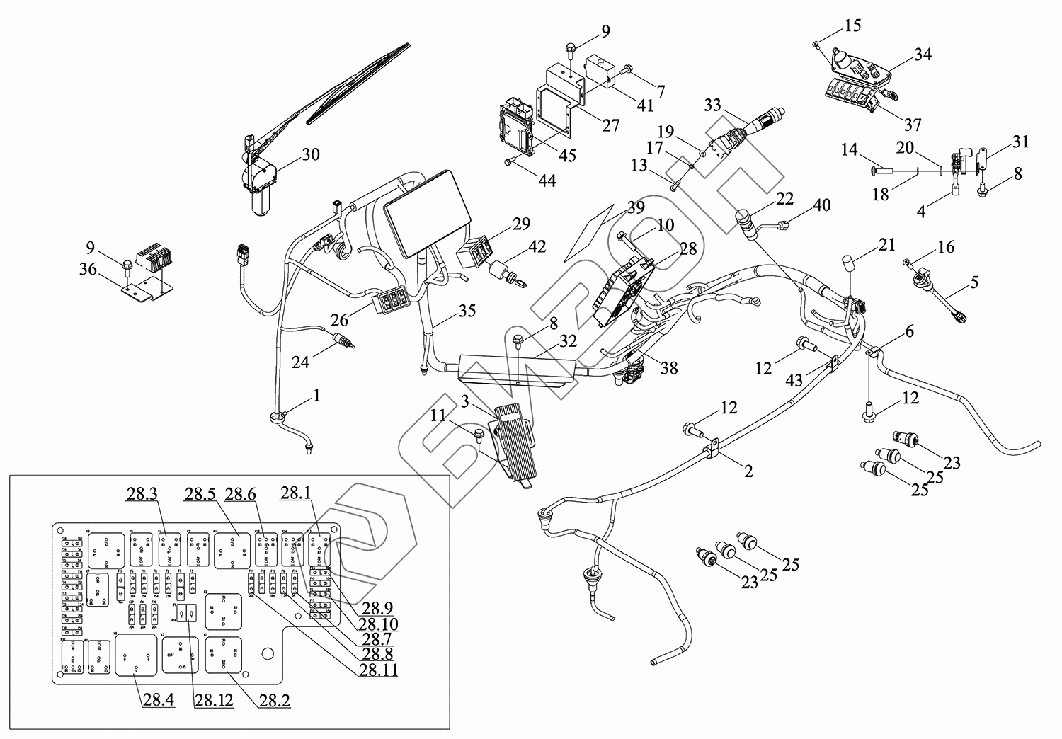 Графический каталог запасных частей к технике: LOVOL TM7N1A2604-003K. Монтажный блок жгута проводов кузова