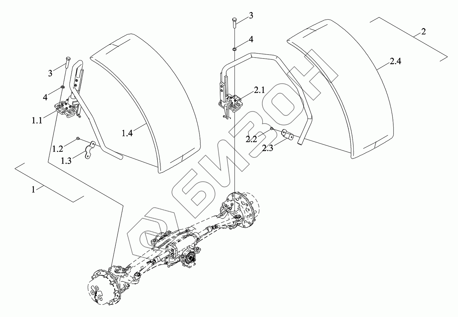 Графический каталог запасных частей к технике: LOVOL TM7N1A2604-003K. Передний брызговик в сборе