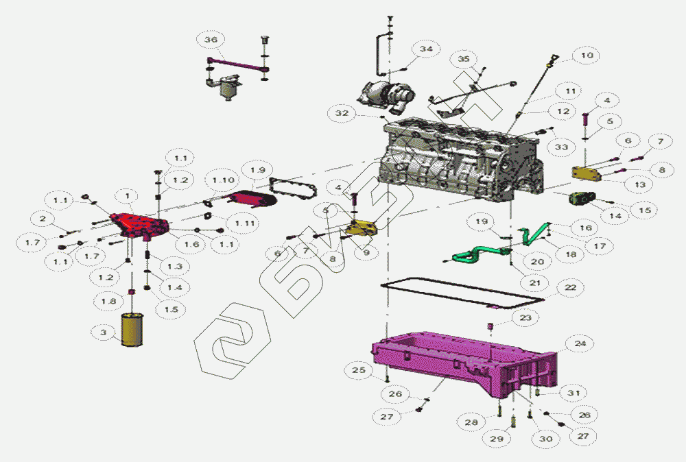 | 16 | D19-105-01 | Кронштейн для всасывающей трубы масла |