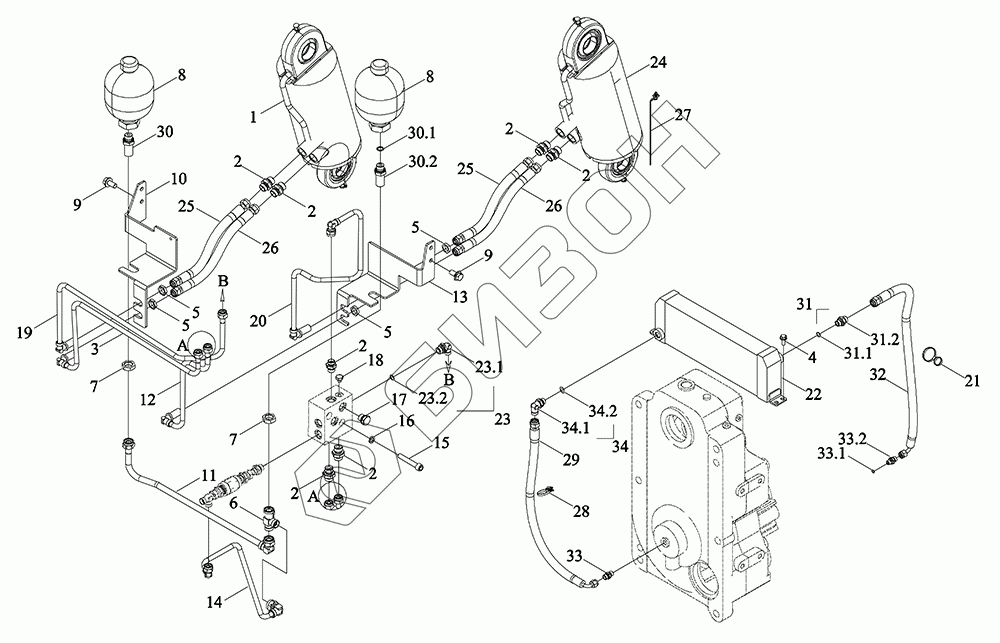 | 25 | TM7N586010034K | Сборка шланга подвода масла к переднему амортизатору 2 |