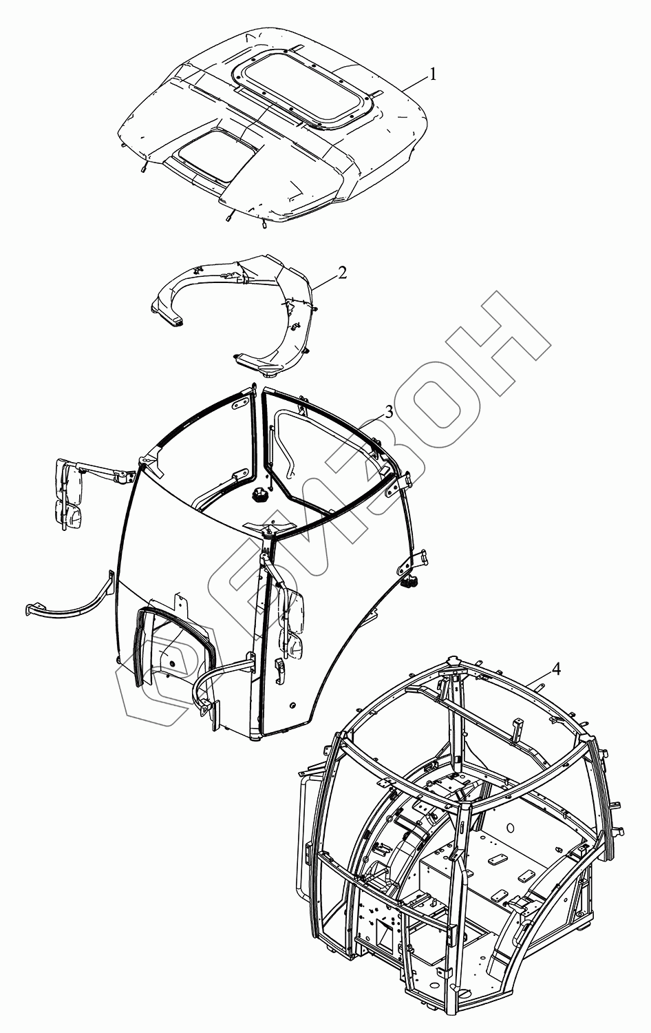 Графический каталог запасных частей к технике: LOVOL TM7N1A2604-009K. Комплектующие кабины