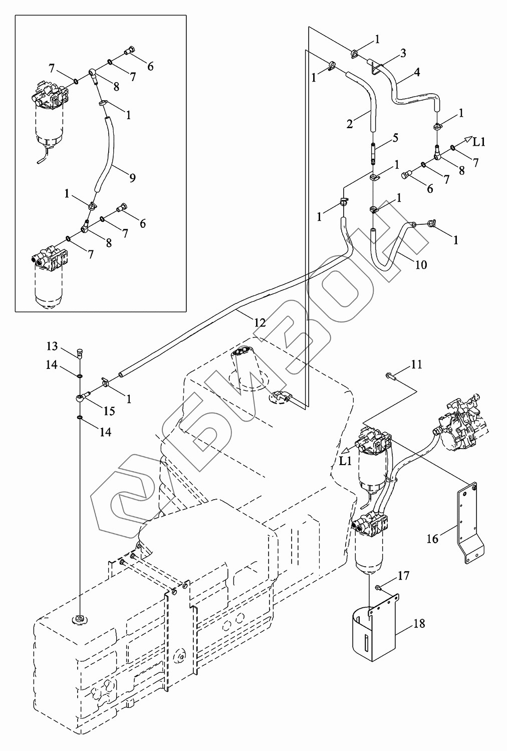 Графический каталог запасных частей к технике: LOVOL TM7N1A2604-009K. Топливопровод