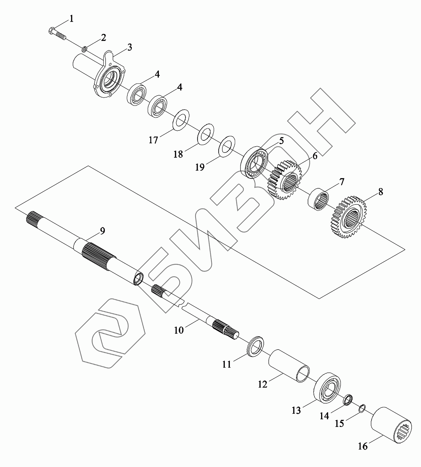 Графический каталог запасных частей к технике: LOVOL TM7N1A2604-009K. Валы и шестерни