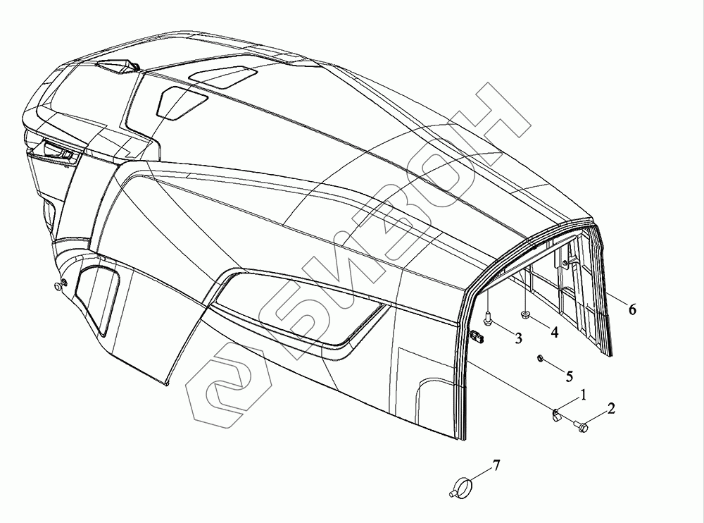 Графический каталог запасных частей к технике: LOVOL TM7N2A3004-001K. Капот в сборе