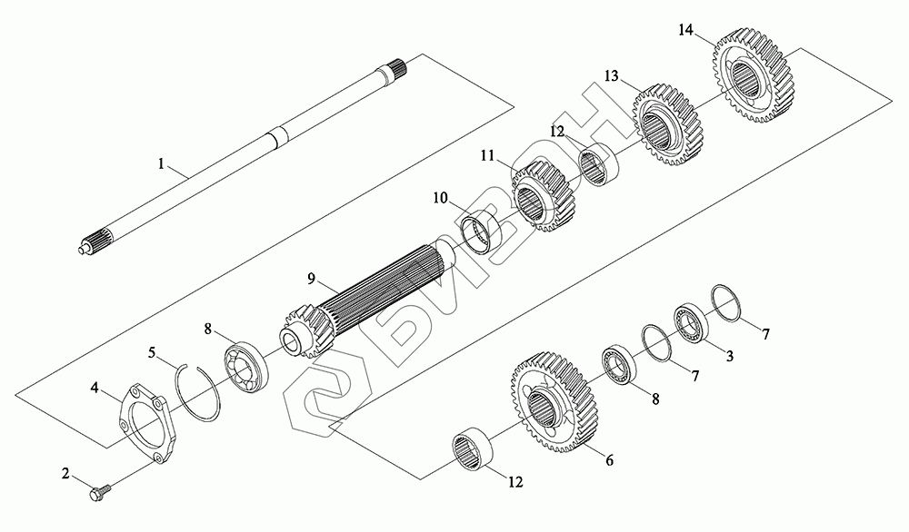 Графический каталог запасных частей к технике: LOVOL TM7N2A3004-001K. Вал выходной