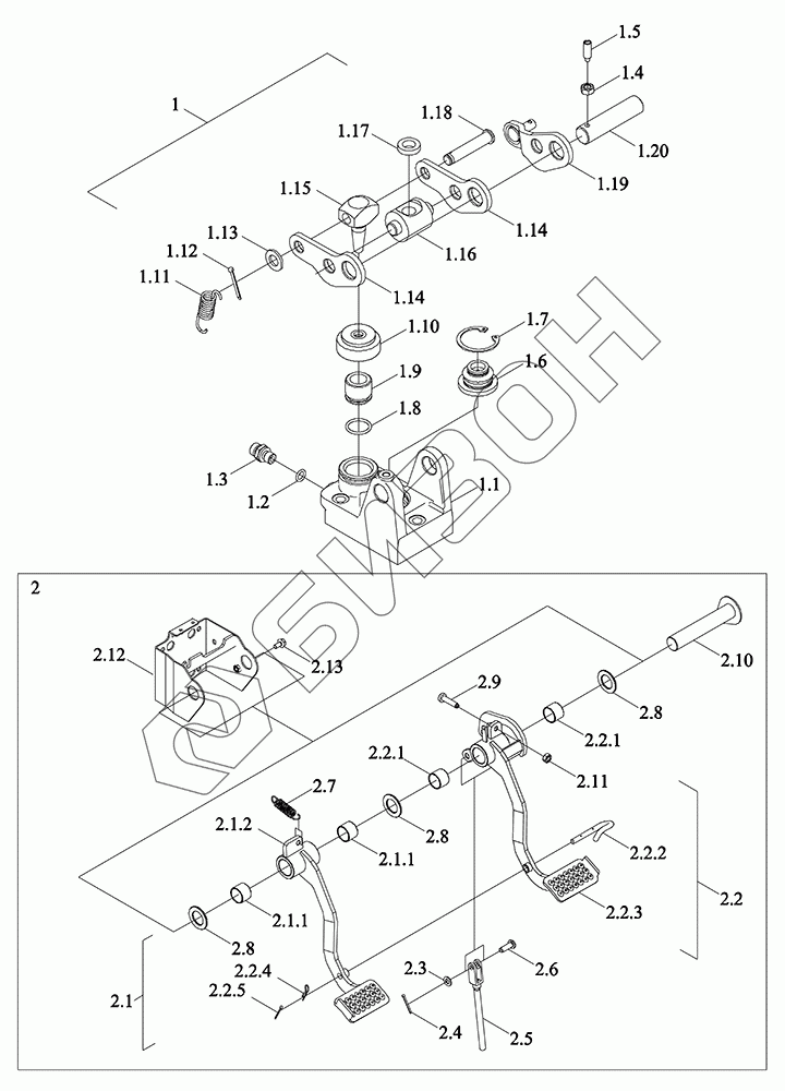 Графический каталог запасных частей к технике: LOVOL TM7N2A3004-001K. Механизм управления рабочими тормозами 3