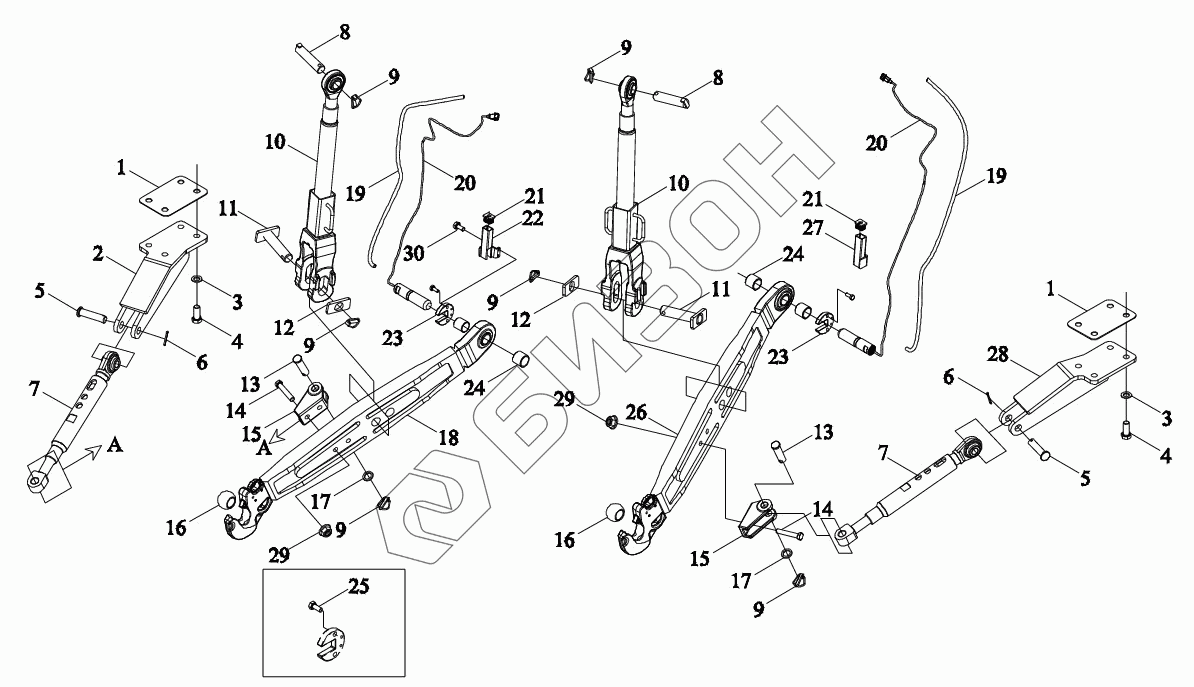 Графический каталог запасных частей к технике: LOVOL TP7C1A2404-016. Рычаги и раскосы задней навески