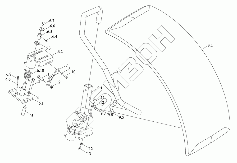 | 9.1 | TP7C477020009 | Опора крышки колеса Держатель штанги в сборе |