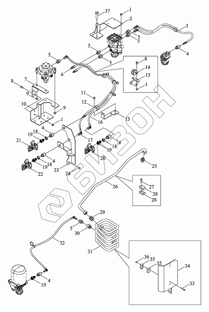 | 2 | TP7C801010023 | Кронштейн приварной крепления клапана управления прицепом |