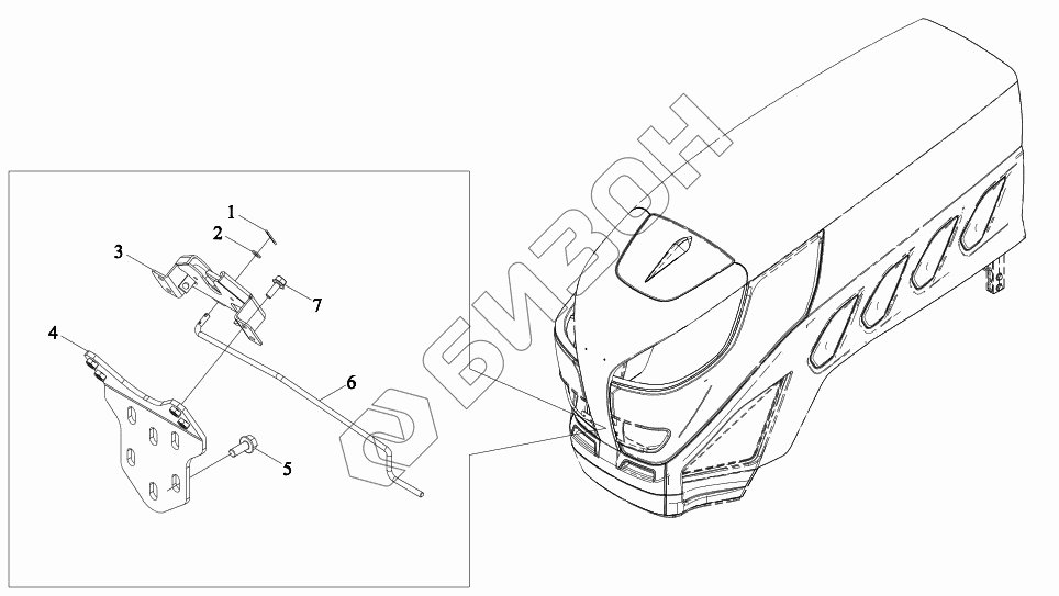 Графический каталог запасных частей к технике: LOVOL TP7C1A2404-022K. Замок капота