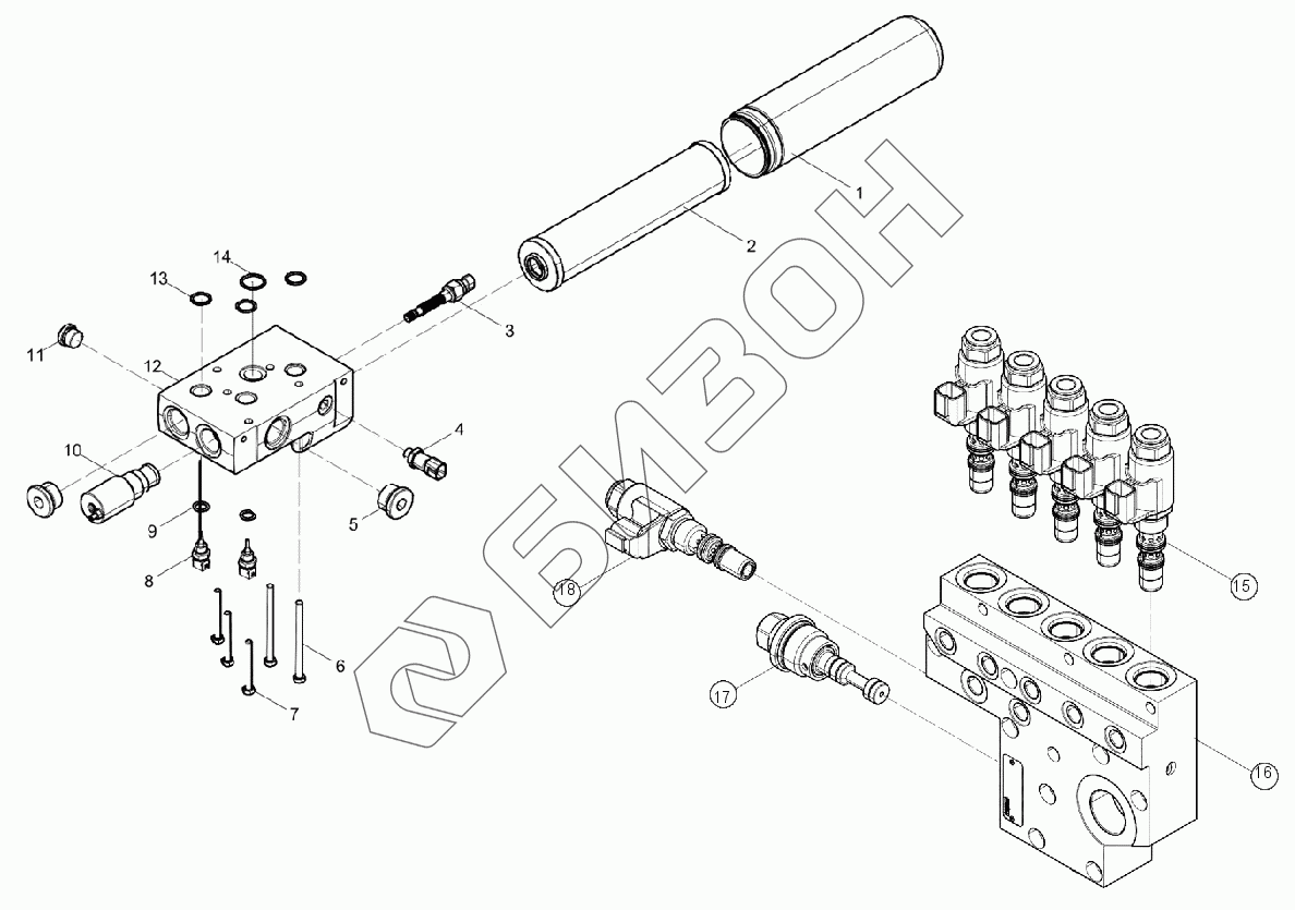 Графический каталог запасных частей к технике: LOVOL TP7C1A2404-022K. Блок клапанов КПП 2