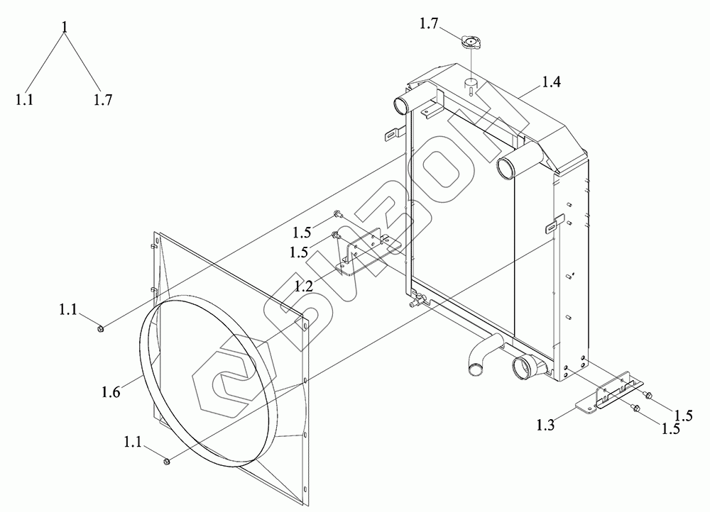 Графический каталог запасных частей к технике: LOVOL TR1SA1504-005K. Дефлектор, радиатор