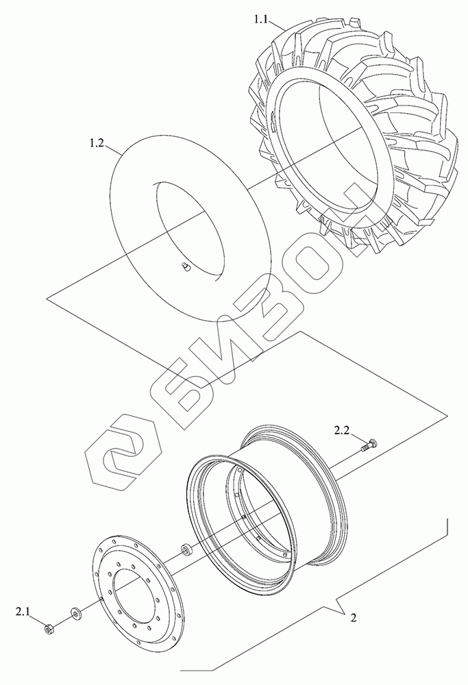 Графический каталог запасных частей к технике: LOVOL TR1SA1504-005K. Колесо переднее