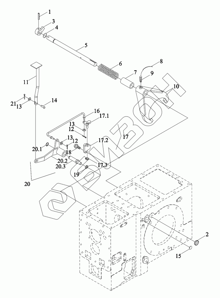Графический каталог запасных частей к технике: LOVOL TR1SA1504-005K. Механизм управления задним мостом 1