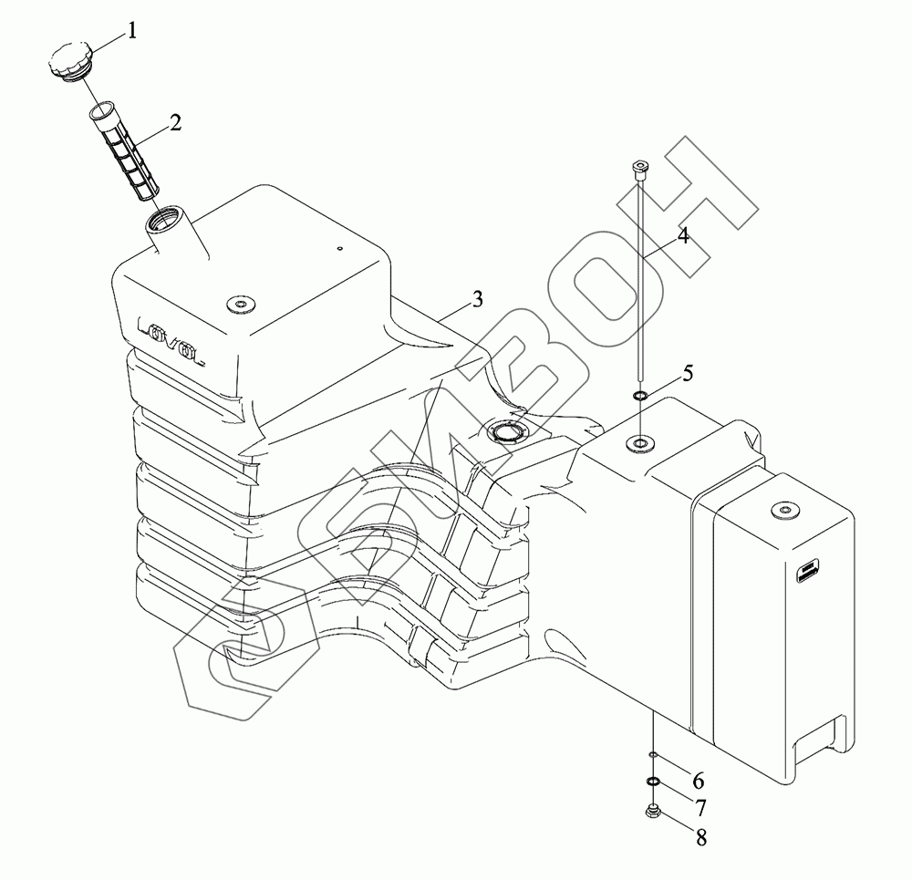 Графический каталог запасных частей к технике: LOVOL TR1SA1504-005K. Монтажный блок топливного бака 2
