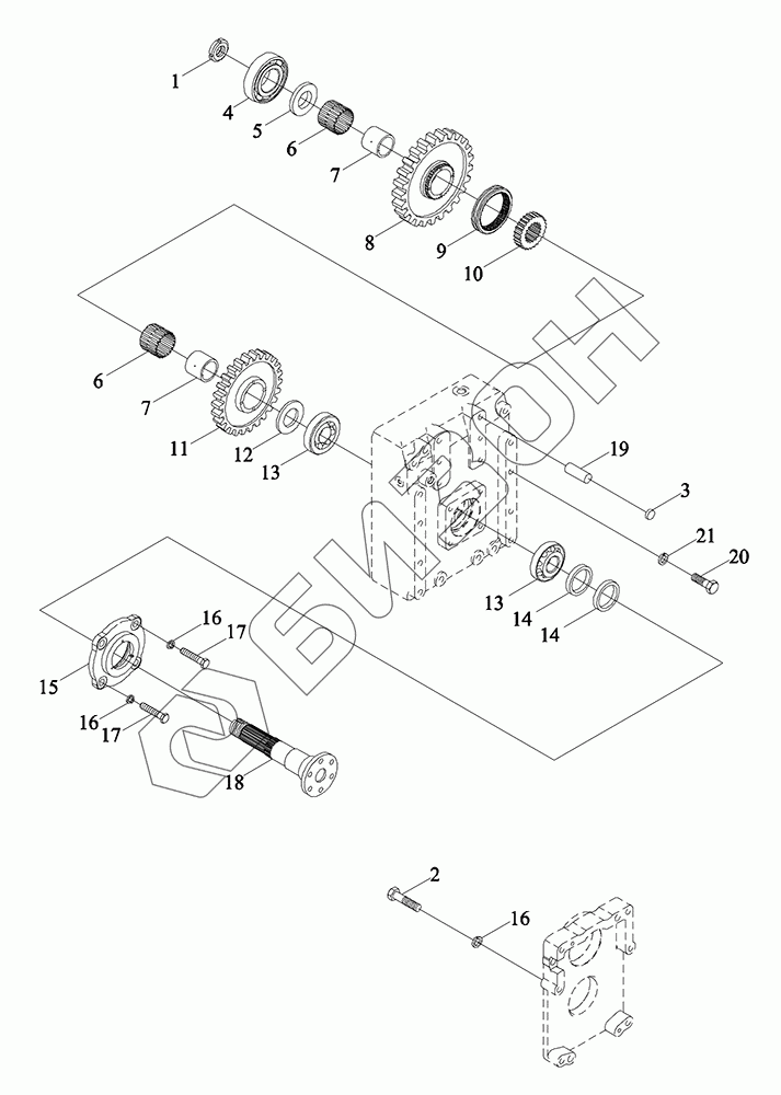 Графический каталог запасных частей к технике: LOVOL TR1SA1504-005K. Механизм отбора мощности 2