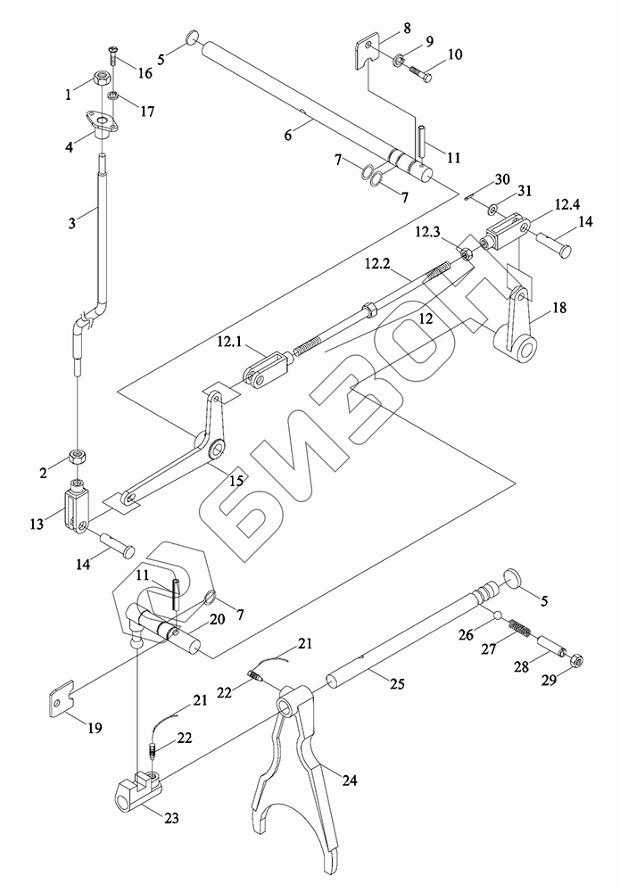 | 25 | TG1204.412A-03 | Ось вилки переключения |