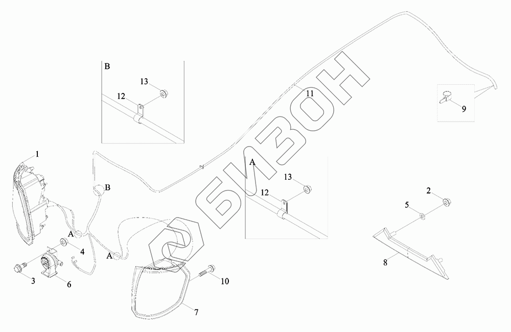 Графический каталог запасных частей к технике: LOVOL TR1SA1504-005K. Монтажный блок жгута проводов переднего освещения