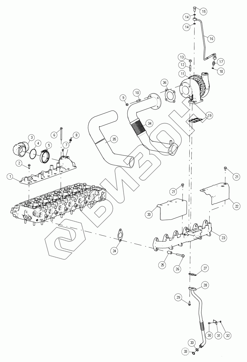Графический каталог запасных частей к технике: LOVOL TR1SA1504-005K. Нагнетатель, коллектор впускной