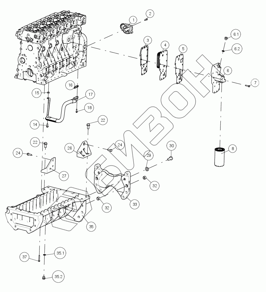 Графический каталог запасных частей к технике: LOVOL TR1SA1504-005K. Насос масляный
