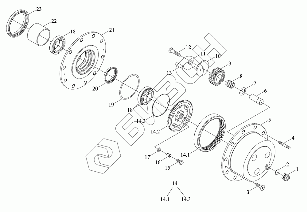 Графический каталог запасных частей к технике: LOVOL TR1SA1504-005K. Редуктор колесный