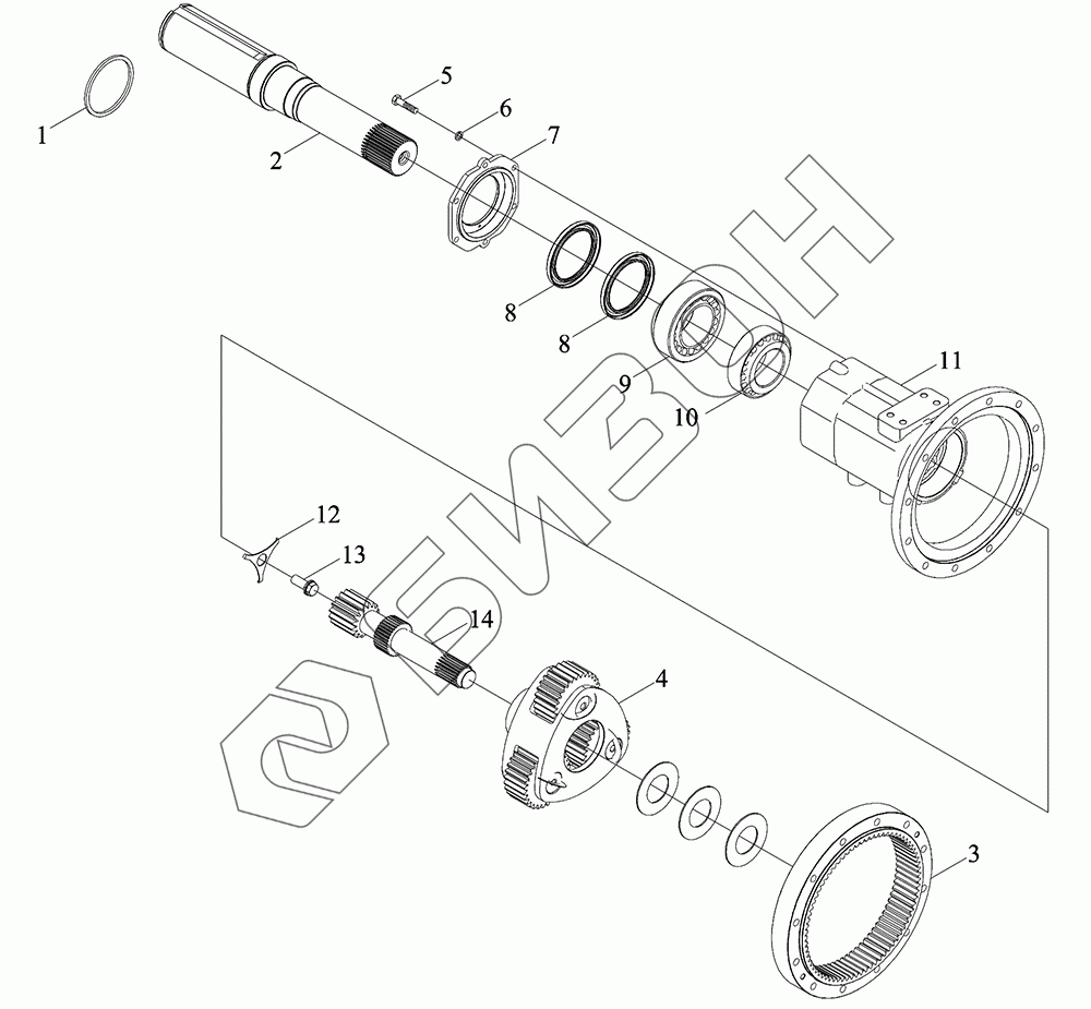 | 13 | FT800.39.105a | Болт крепления водила планетарной передачи |
