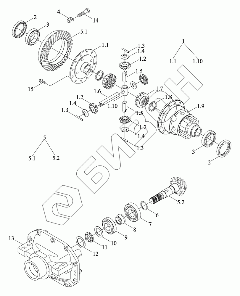 Графический каталог запасных частей к технике: LOVOL TR1SA1504-005K. Дифференциал, главная пара
