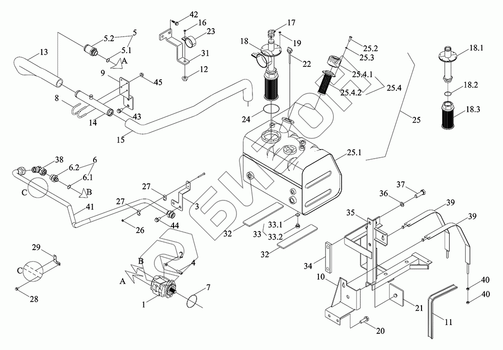 Графический каталог запасных частей к технике: LOVOL TR1SA1504-005K. Гидросистема
